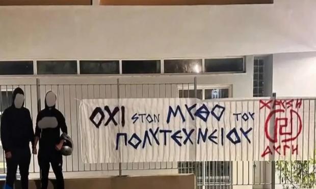 Σύμφωνα με τον ΑΝΤ1, στο ίδιο σχολείο αναρτήθηκε από ομάδα μαθητών ένα πανό της Χρυσής Αυγής που έγραφε «όχι στον μύθο του Πολυτεχνείου».