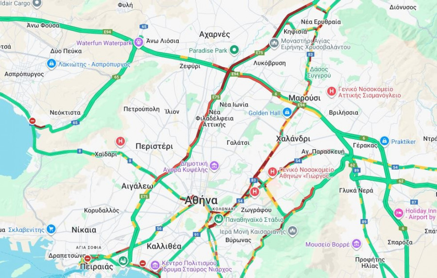 Καθυστερήσεις ύψος Αγίας Παραρασκευής έως την έξοδο για Καρέα.