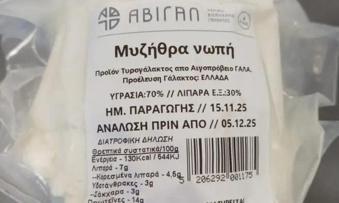 Ο Ε.Φ.Ε.Τ. και ειδικότερα η Περιφερειακή Διεύθυνση Δυτικής Ελλάδας, στο πλαίσιο του Προγράμματος «Επίσημος Έλεγχος για την Παρακολούθηση Μικροβιολογικών Κριτηρίων Ασφάλειας Τροφίμων», προέβη σε δειγματοληψία τροφίμου με τα στοιχεία: “Μυζήθρα Νωπή-ΑΒΙΓΑΛ” με ημερομηνία παραγωγής 15/11/25, ημερομηνία ανάλωσης έως τις 05/12/25, συσκευασίας καθαρού βάρους 400g, το οποίο παράγεται και συσκευάζεται στην Ελλάδα από την Α.ΒΙ.ΓΑΛ Α.Ε.-ΑΧΑΪΚΗ ΒΙΟΜΗΧΑΝΙΑ ΓΑΛΑΚΤΟΣ-ΕΜΠΟΡΙΑ ΕΙΔΩΝ ΣΟΥΠΕΡ ΜΑΡΚΕΤ-ΑΦΟΙ ΑΘ. ΠΑΝΤΕΛΗ & ΣΙΑ ΑΕ. Το προϊόν εξετάστηκε από το Τμήμα Υγιεινής Τροφίμων, της Δ/νσης Κτηνιατρικού Κέντρου Αθηνών του ΥΠΑΑΤ, όπου διαπιστώθηκε η παρουσία Σταφυλοκοκκικών Εντεροτοξινών τύπου SEA έως SEE.