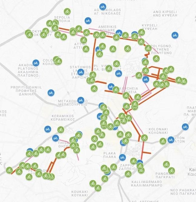 Όπως φαίνεται από τον χάρτη που περιλαμβάνει το προτεινόμενο δίκτυο, οι ποδηλατόδρομοι θα περνούν από οδούς: στα Σεπόλια (Οδός Αντιγόνης, Φιλιππουπόλεως, Αγίου Μελετίου), στην Κυψέλη (Σποράδων, Ζακύνθου, Αργοστολίου, Ευελπίδων), στο Γκύζι ( Βαλτινών, Μουστοξύδι, Κουμανούδη, Λύτρα, Μομφεράτου, Λομβάρδου), στα Εξάρχεια (Ιπποκράτους, Χαρ. Τρικούπη, Αραχώβης, Θεμιστοκλέους, Δερβενίων, Στουρνάρη), κοντά στη Βικτώρια (Μακεδονίας, Μιχ. Βόδα), στο στο κέντρο της πρωτεύουσας, (Σόλωνος, Πεζόδρομος Μασσαλίας, Σέκερη, Κανάρη, Πλ. Φιλικής Εταιρείας, Κουμπάρη, Ηρώδου Αττικού, Βασ. Γεωργίου Β’) και στα Πετράλωνα (Ακαμάντος, Τρωών, Δημοδώντος, Δωριέων, Αλώπης, Αλκμήνης).