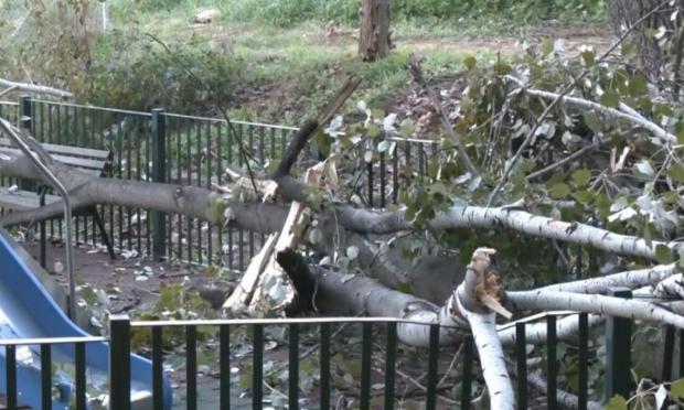Η πτώση του δέντρου έχει προκαλέσει ζημιές τόσο στα κιγκλιδώματα όσο και σε κάποια παιχνίδια και από τύχη δεν συνέβη κάτι χειρότερο.