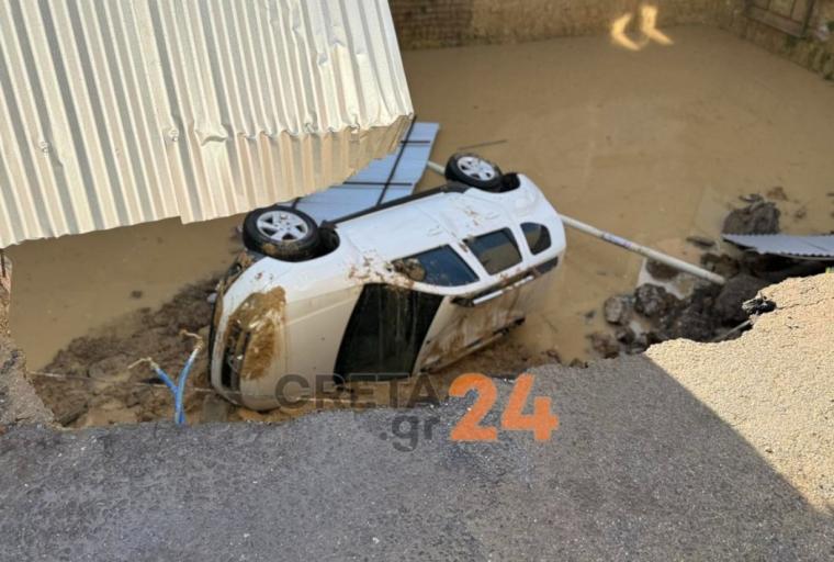 Η κακοκαιρία χτύπησε με σφοδρότητα και την Κρήτη, προκαλώντας σοβαρά ατυχήματα και ζημιές στο οδικό δίκτυο του Ηρακλείου. Χαρακτηριστικό είναι το περιστατικό στην οδό Φωτάκη (κάθετη της λεωφόρου Δημοκρατίας), όπου υποχώρησε το οδόστρωμα με αποτέλεσμα να «βουλιάξει» ένα σταθμευμένο αυτοκίνητο.