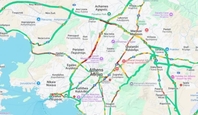 Συγκεκριμένα, στο «κόκκινο» είναι από νωρίς ο Κηφισός, με τους οδηγούς να κινούνται με χαμηλές ταχύτητες και στα δύο ρεύματα.
