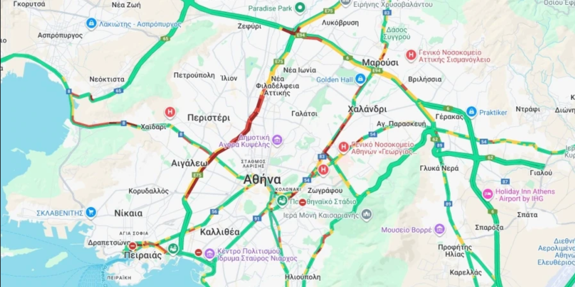 Προβλήματα καταγράφονται και σε άλλες κεντρικές αρτηρίες της Αττικής. Η λεωφόρος Κηφισίας και η λεωφόρος Μεσογείων κινούνται επίσης στο «κόκκινο», με αυξημένες καθυστερήσεις κατά τόπους και χαμηλές ταχύτητες.