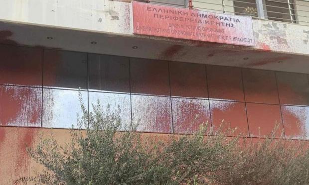Ηράκλειο Κρήτης: Πέταξαν κόκκινη μπογιά στο κτίριο της Διεύθυνσης Αγροτικής Ανάπτυξης