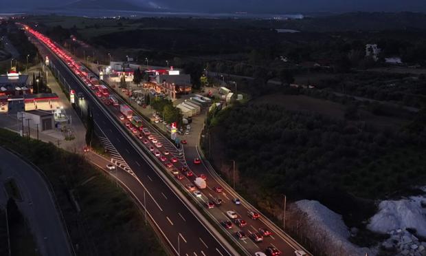 Κάμερα από drone καταγράφει ουρά χιλιομέτρων με κολλημένους οδηγούς και επιβάτες που αποφάσισαν να ταξιδέψουν ενόψει εορτών ή απλώς να μετακινηθούν για τις δουλειές και τις υποχρεώσεις τους.