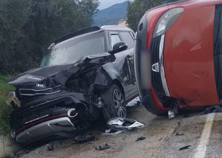 Όπως φαίνεται και στην φωτογραφία το πρώτο όχημα μετά από την σφοδρή σύγκρουση αναποδογύρισε.