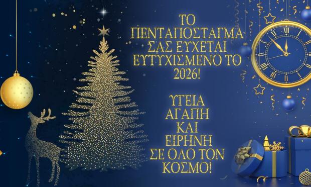 Το ΠΕΝΤΑΠΟΣΤΑΓΜΑ και οι συνεργάτες του εύχονται από καρδιάς το 2026 να είναι μια καλή χρονιά για όλους τους αναγνώστες και τις αναγνώστριες, σε κάθε γωνιά της Ελλάδας και σε κάθε σημείο του κόσμου όπου χτυπά η ελληνική καρδιά.