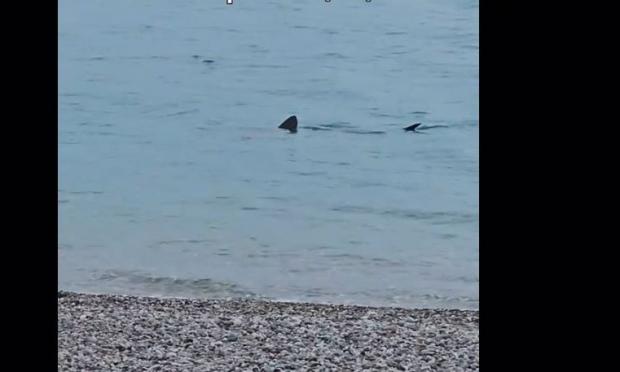Πρόκειται για καρχαρία (4-5 μέτρων) και αμέσως έγινε θέμα συζήτησης και πολλοί ήταν εκείνοι που τράβηξαν βίντεο.