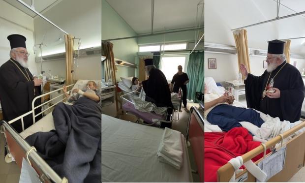 Στη συνέχεια ο Σεβασμιώτατος συνοδευόμενος από τον κ. Διοικητή επισκέφθηκε τους ασθενείς στους θαλάμους νοσηλείας τους και τούς ευχήθηκε ταχεία ανάρρωση, υπομονή, πίστη και ελπίδα στο Θεό.