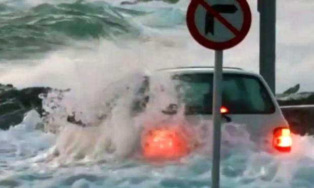 Μέσα στο χάος, ένας οδηγός αποφάσισε να αψηφήσει τον κίνδυνο και να πλησιάσει το αυτοκίνητό του, σε μια προσπάθεια να το απομακρύνει πριν παρασυρθεί από τη θάλασσα. Σε βίντεο που καταγράφηκε από παρευρισκόμενους, φαίνεται να παλεύει κυριολεκτικά με τα κύματα, ενώ το νερό έχει ήδη καλύψει τις ρόδες του οχήματος.
