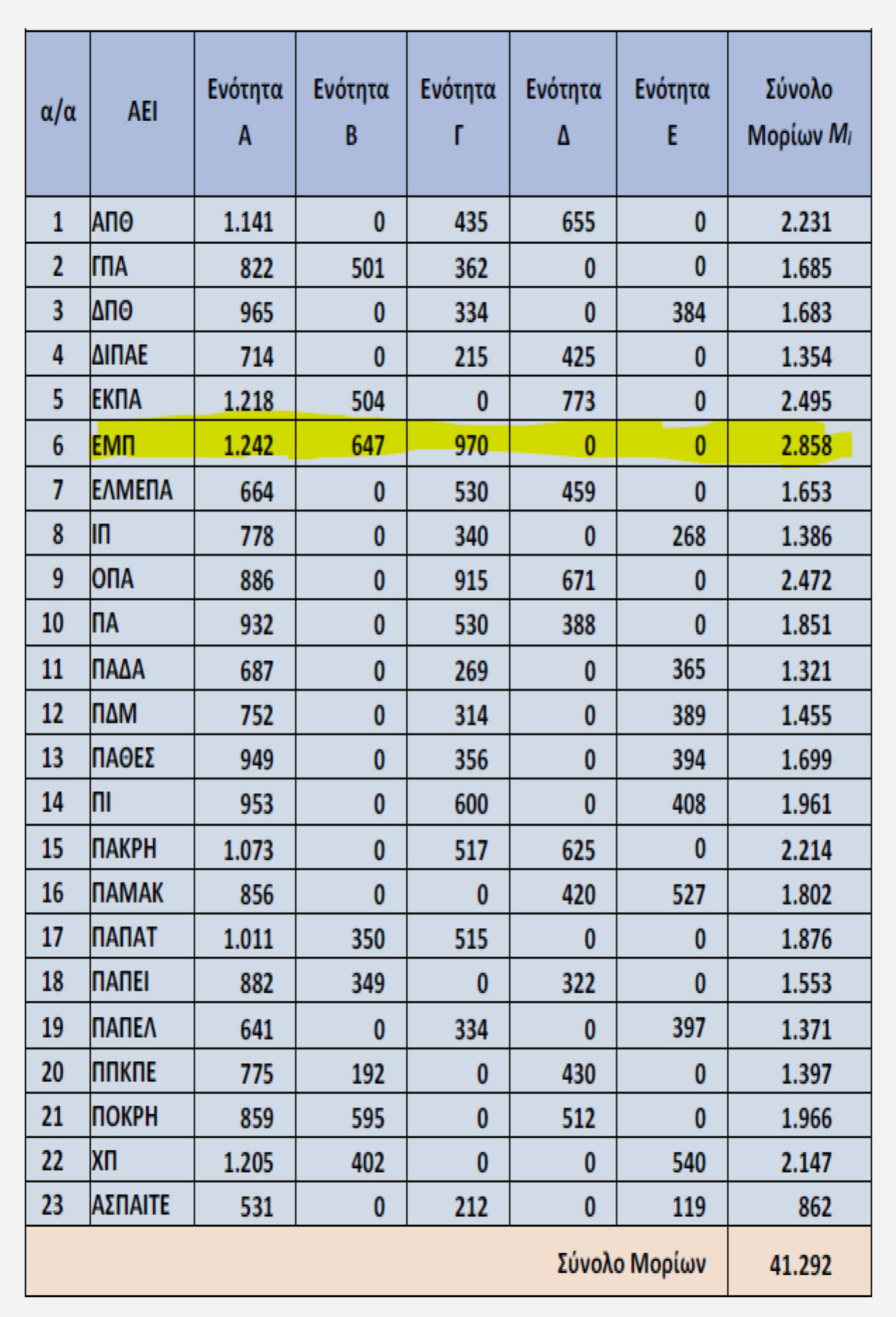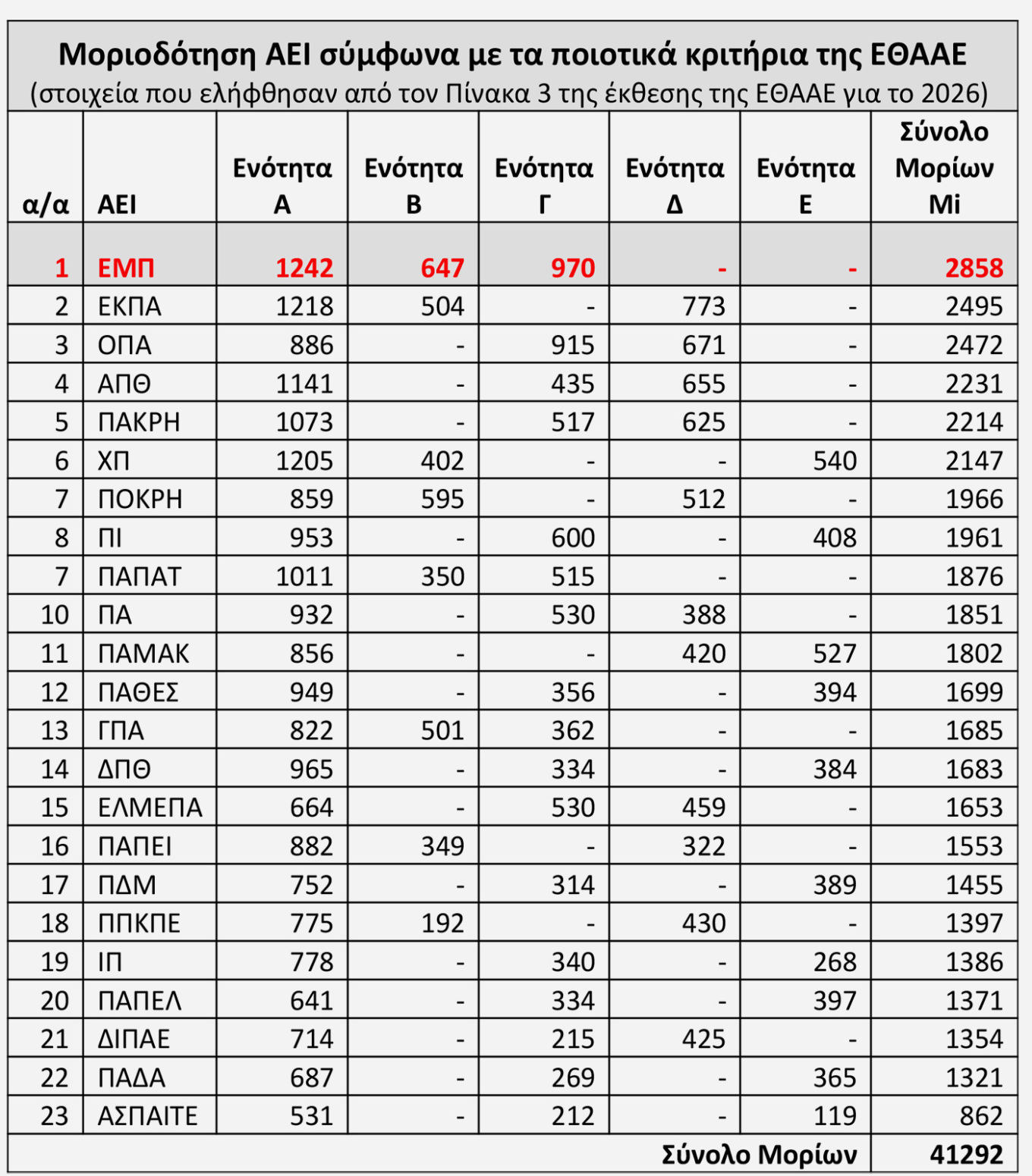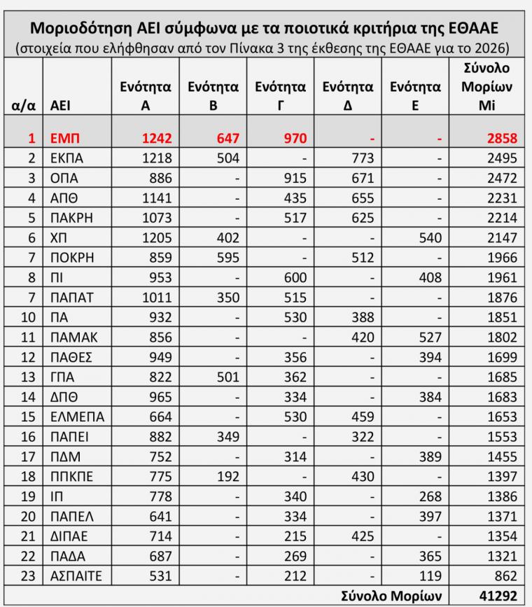 (στοιχεία που ελήφθησαν από τον Πίνακα 3 της έκθεσης της ΕΘΑΑΕ για το 2026)