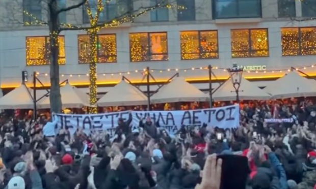 «Πετάξτε ψηλά αετοί»: Το πανό των οπαδών του Ολυμπιακού στο Άμστερνταμ για τα θύματα της τραγωδίας στη Ρουμανία