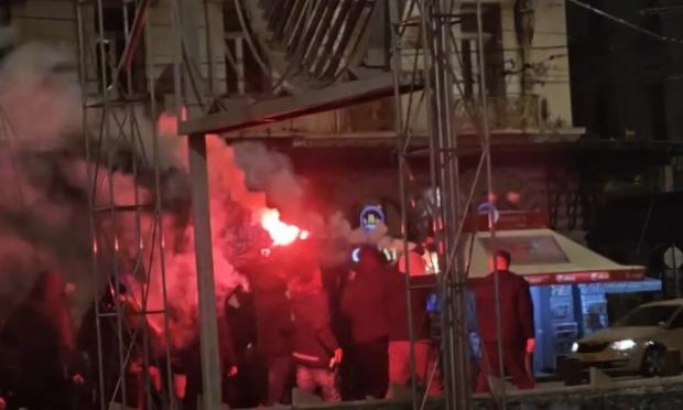 Οι φίλοι του ΠΑΟΚ πορεύτηκαν έχοντας στην κεφαλή ένα πανό με τη λέξη «Αθάνατοι», το οποίο και κρέμασαν στην Ομόνοια.