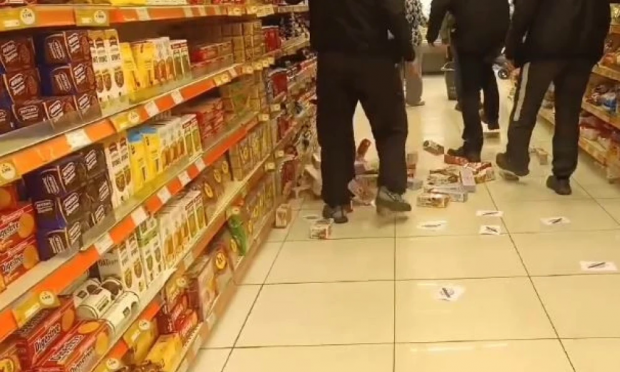 Λίγο αργότερα άρχισαν να ποδοπατούν τα μπισκότα με τους πελάτες να μένουν αποσβολωμένοι μέχρι την αποχώρηση των αντιεξουσιαστών.