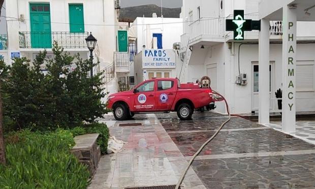 Για την αντιμετώπιση της έκτακτης κατάστασης, από το πρωί της Κυριακής, συνεργεία του Δήμου Πάρου και της Πυροσβεστικής αλλά και μέλη της Ελληνικής Ομάδας Διάσωσης – Παράρτημα Κυκλάδων, εργάζονται πυρετωδώς ώστε να αποκαταστήσουν τα προβλήματα που προκλήθηκαν.