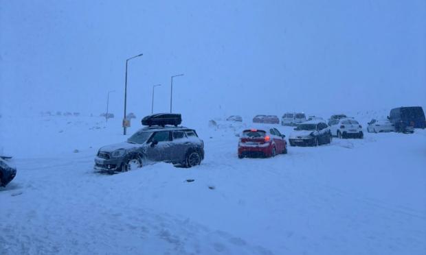 Εγκλωβισμένοι εδώ και αρκετές ώρες παραμένουν 100 και πλέον επισκέπτες του Χιονοδρομικού Κέντρου Φαλακρού στη Δράμα.
