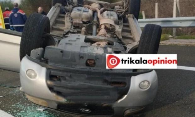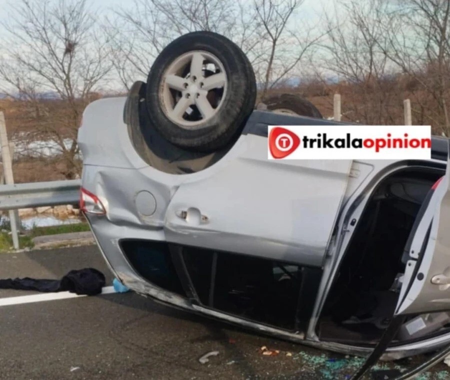 Το αυτοκίνητο εξετράπη της πορείας του και ανετράπη, όπως φαίνεται και σε φωτογραφίες από το σημείο.