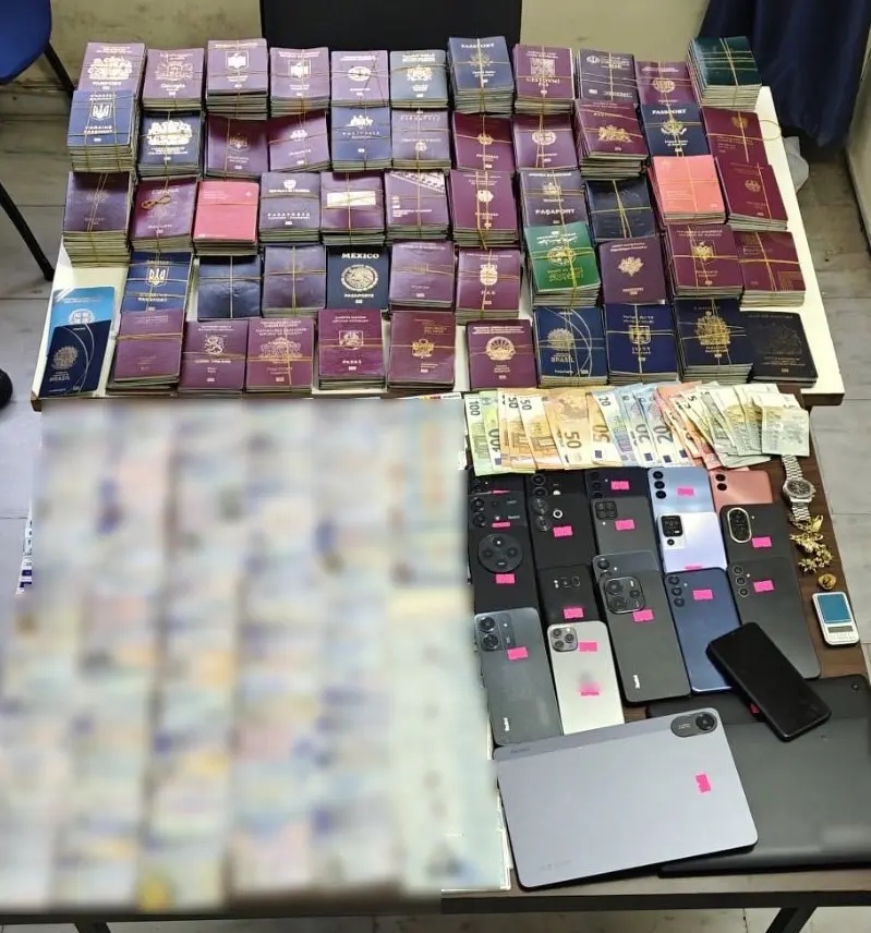 Στη συνέχεια, οι αστυνομικοί εντόπισαν στο κέντρο της Αθήνας τον 21χρονο κατηγορούμενο και σε έρευνα στο σπίτι του και σε άλλα σπίτι που χρησιμοποιούσε ως χώρο απόκρυψης των ταξιδιωτικών εγγράφων βρέθηκαν και κατασχέθηκαν: