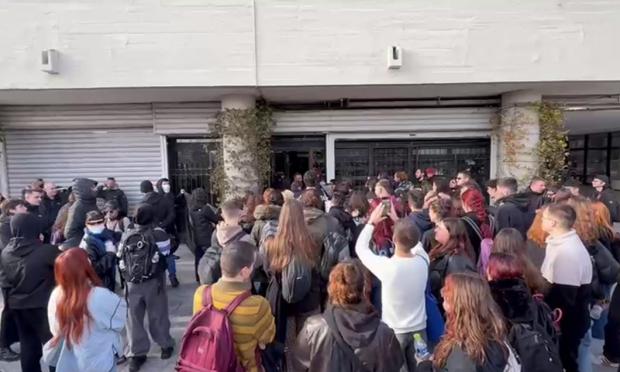Οι διαδηλωτές εκφράζουν την αντίθεσή τους στο μέτρο της ελεγχόμενης εισόδου στους χώρους του ιδρύματος και ειδικότερα στην τοποθέτηση συστημάτων ελέγχου, όπως τουρνικέ, στις εισόδους.