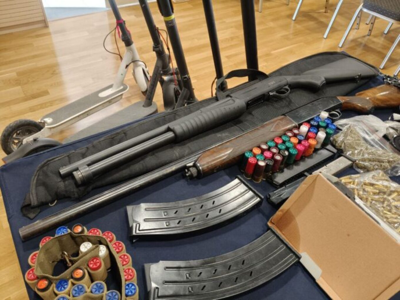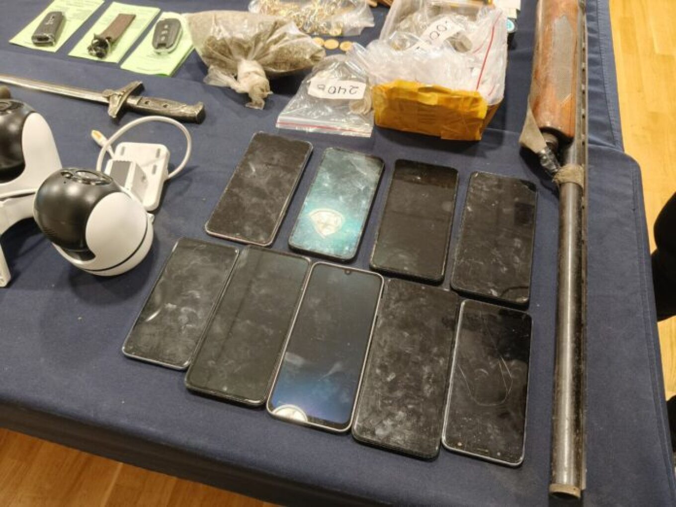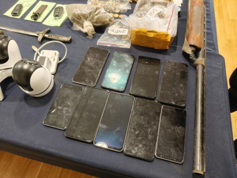 Επίσης, βρέθηκαν και κατασχέθηκαν 10 κινητά τηλέφωνα, 3 μηχανάκια κλεμμένα, τουλάχιστον 6 αυτοκίνητα και 5 πατίνια.