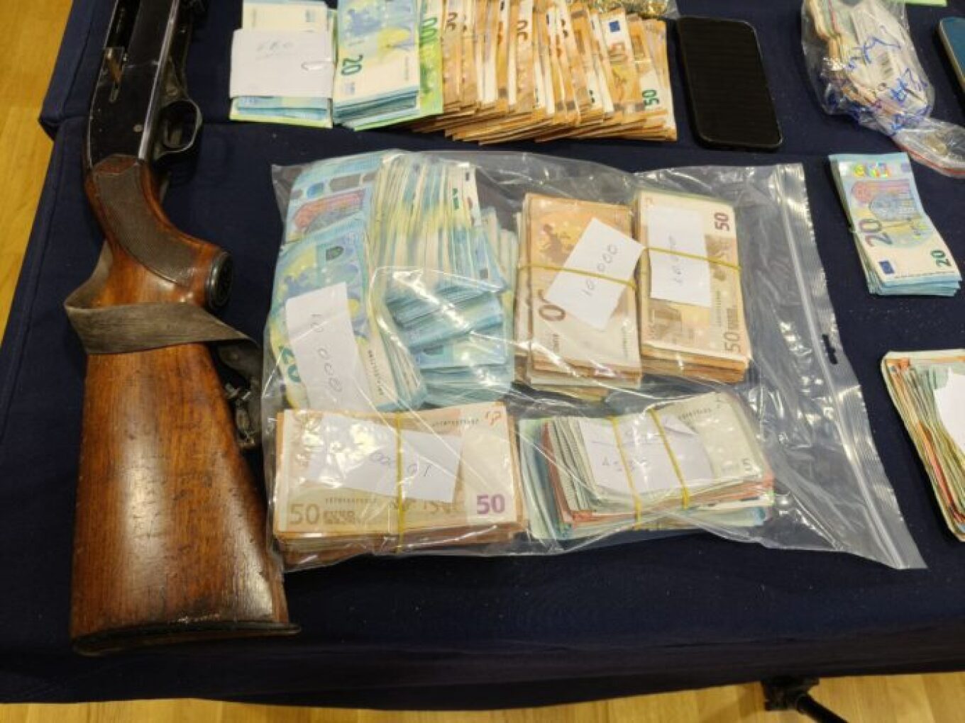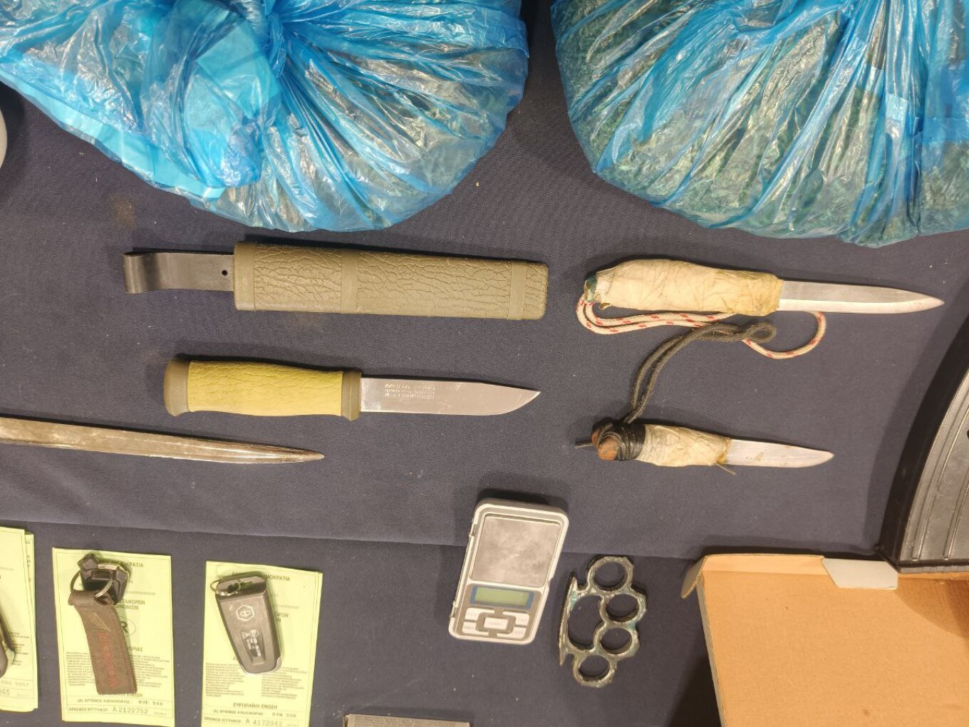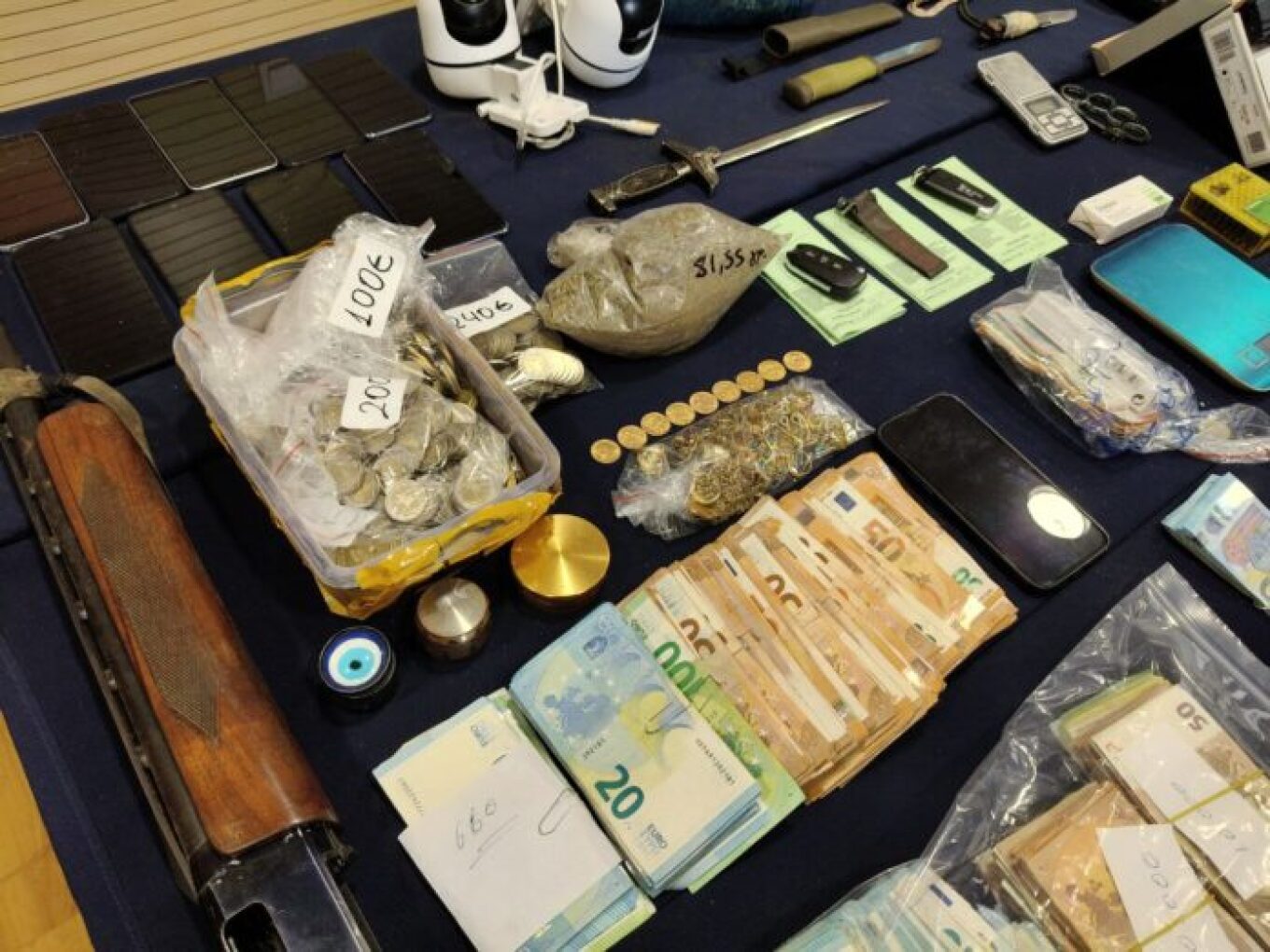 Σχεδόν μισό κιλό κοκαΐνης, €60.000 σε μετρητά, 5 μαχαίρια, 2 κάμερες, 3 καραμπίνες και φυσίγγια βρέθηκαν στην κατοχή των 13 μελών εγκληματικής οργάνωσης που εξαρθρώθηκε στον Βόλο.