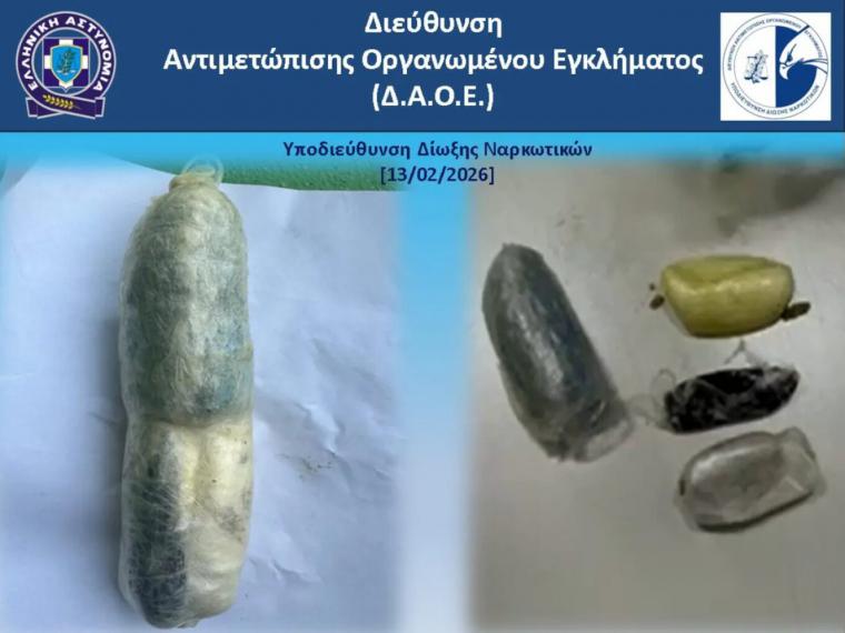 Τελικά, πρωινές ώρες της Παρασκευής (13/2), κατελήφθη ενός των φυλακών Μαλανδρίνου η 23χρονη από την Αίγυπτο να κατέχει εντός της κολπικής της κοιλότητας και για λογαριασμό των υπολοίπων μελών της εγκληματικής οργάνωσης: μία αυτοσχέδια νάιλον συσκευασία, περιέχουσα κοκαΐνη, μεικτού βάρους 33 γραμ., μία αυτοσχέδια νάιλον συσκευασία, περιέχουσα ηρωίνη, μεικτού βάρους 21 γραμ., μία αυτοσχέδια νάιλον συσκευασία, περιέχουσα κρυσταλλική μεθαμφεταμίνη, μεικτού βάρους 13 γραμ., μία αυτοσχέδια νάιλον συσκευασία, περιέχουσα κατεργασμένη κάνναβη (σοκολάτα), μεικτού βάρους 11 γραμ. και μία αυτοσχέδια νάιλον συσκευασία, περιέχουσα ακατέργαστη κάνναβη, μεικτού βάρους 66 γραμμαρίων.