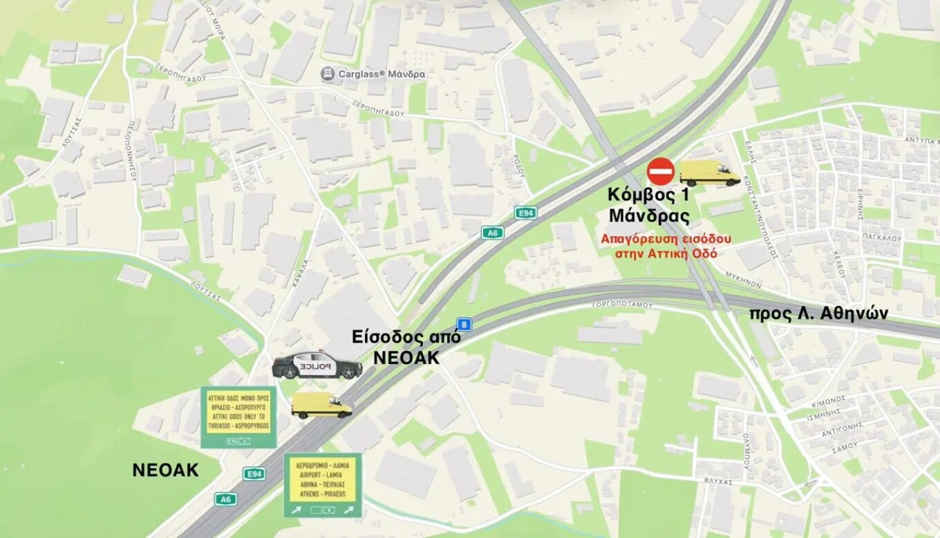 Έως και την 06.00 ώρα της Κυριακής 22 Φεβρουαρίου ο ολικός αποκλεισμός κλάδων εισόδου στην Αττική Οδό, στην κατεύθυνση προς Αεροδρόμιο, περιοχής Δήμων Μάνδρας-Ειδυλλίας, Ελευσίνας, Ασπροπύργου και Φυλής, λόγω της περαιτέρω παράτασης των έκτακτων εργασιών βαριάς συντήρησης της σήραγγας «Λιοσίων».