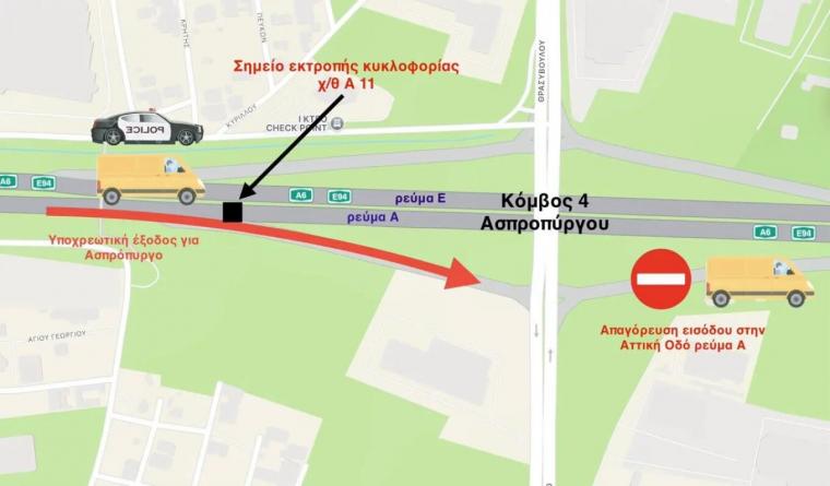 Επισημαίνεται ότι το τμήμα της Αττικής Οδού από την είσοδο της Ν.Ε.Ο. Αθηνών – Κορίνθου μέχρι και την έξοδο Ασπροπύργου (κόμβος 4), προορίζεται για την εξυπηρέτηση αποκλειστικά και μόνο των οχημάτων που επιθυμούν να κινηθούν προς την περιοχή του Θριασίου.
