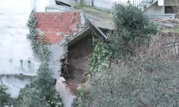 Υποχώρηση εδάφους σε οικόπεδο πολυκατοικίας στη Θεσσαλονίκη από την κακοκαιρία