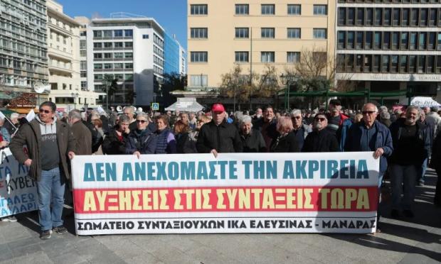 Συγκέντρωση και πορεία διαμαρτυρίας πραγματοποιούν αυτή την ώρα οι ενώσεις συνταξιούχων στο κέντρο της Αθήνας,