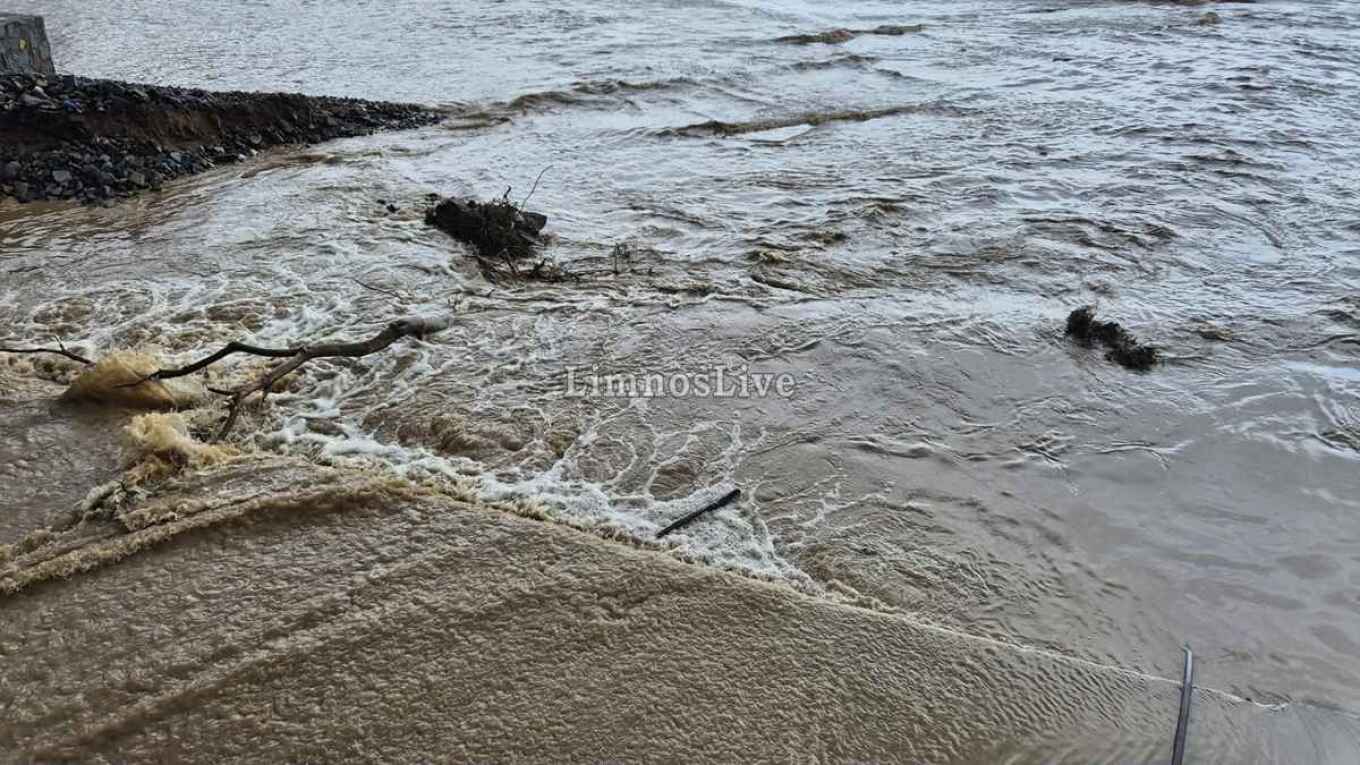 Οι εικόνες καταγράφηκαν από το limnoslive.gr, αποτυπώνοντας την αγωνία των κατοίκων και την προσπάθεια των αρχών να περιορίσουν τις συνέπειες.