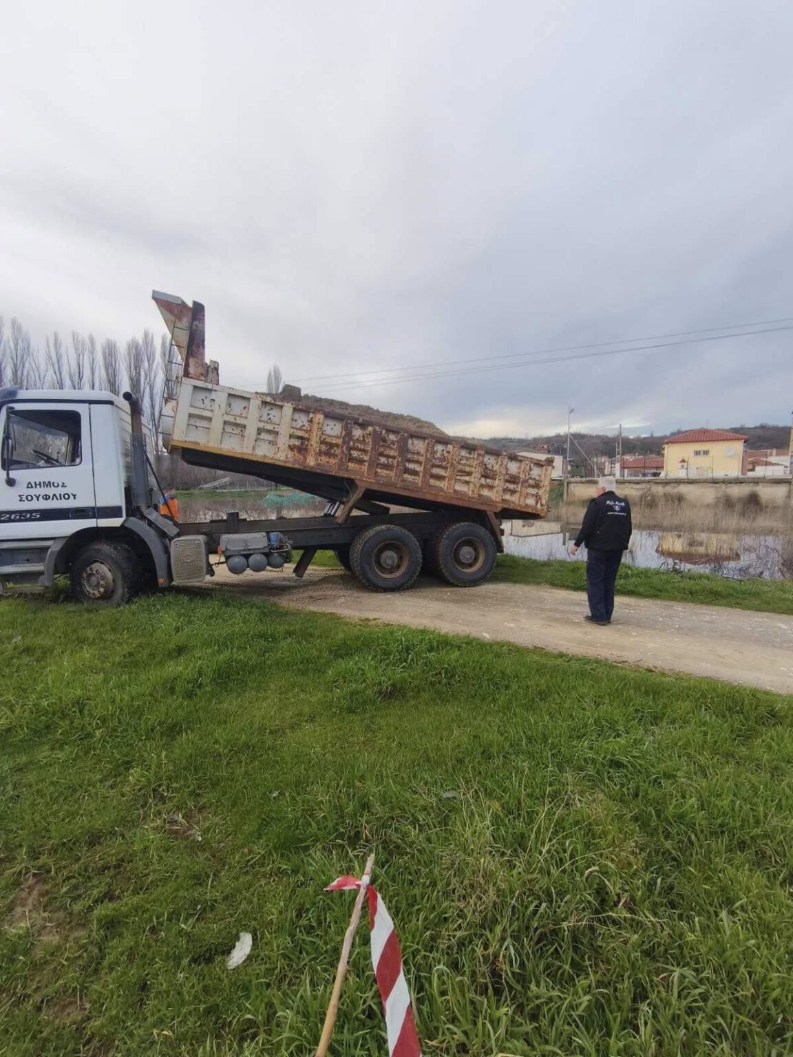 Όπως βλέπετε στις φωτογραφίες από την επίσημη σελίδα του Δήμου Σουφλίου, μηχανήματα ενίσχυσαν σημεία προκειμένου να μην επιτραπεί στο νερό να φτάσει στα σπίτια του χωριού.