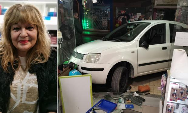 Μετά από κάποια λεπτά, «έπεσε με φόρα στο μαγαζί, έσπασε τη τζαμαρία, έριξε ψυγεία κάτω. Αλλά μέσα στην ατυχία ήμουν τυχερή, γιατί απ' ό,τι είπε η αστυνομία, θα έμπαινε όλος μέσα στο μαγαζί και θα με σκότωνε. Απλά ένας διανομέας είχε αφήσει έξω στην πόρτα το μηχανάκι του και το πήρε από κάτω και έκοψε την φόρα. Το διέλυσε το μηχανάκι».