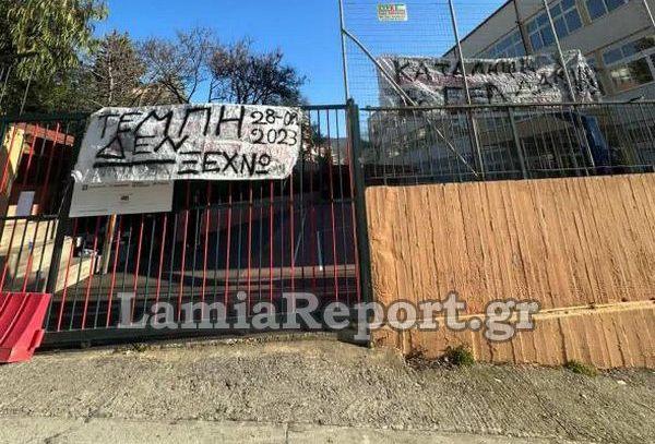 Σε καταλήψεις προχώρησαν οι μαθητές όλων των λυκείων της Λαμίας με αφορμή τη συμπλήρωση τριών χρόνων από το δυστύχημα στα Τέμπη, έχοντας έξω από τα σχολεία πανό που γράφουν «έγκλημα των Τεμπών» και «δεν έχω οξυγόνο».