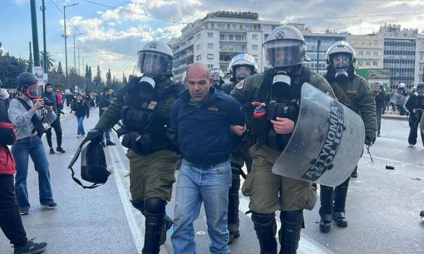 Βίντεο ντοκουμέντο κατέγραψε το Newsbomb.gr. Διαδηλωτής, μετά το τέλος του συλλαλητηρίου για τα Τέμπη, στέκεται επί της Αμαλίας προκαλώντας τους αστυνομικούς των ΜΑΤ που απωθούσαν κουκουλοφόρους, να τον συλλάβουν.