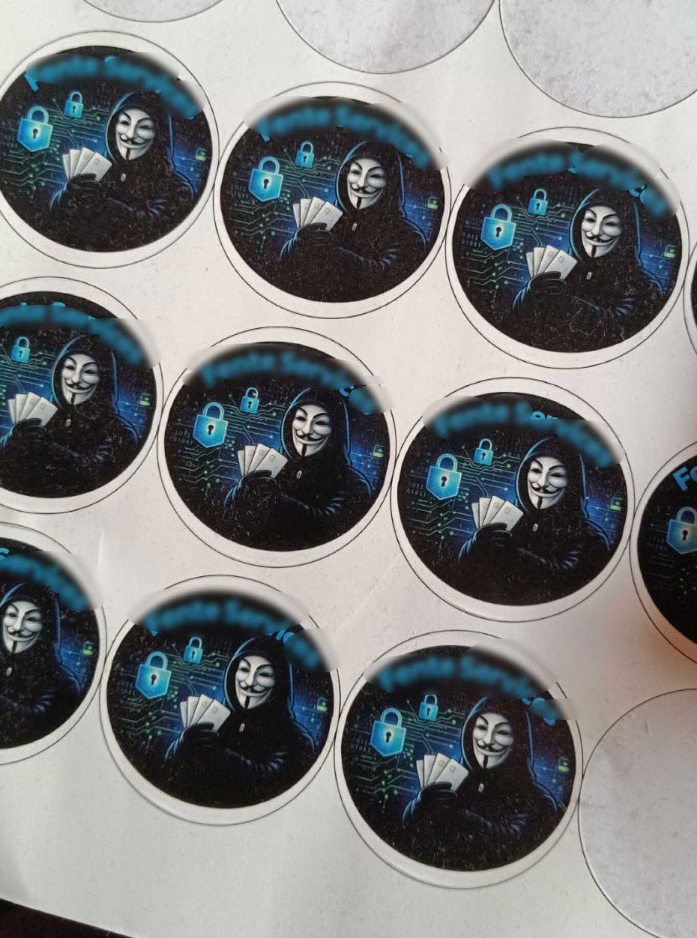 - υλικά συσκευασίας, αυτοκόλλητα λογότυπα και αποδεικτικά αποστολής που σχετίζονται με προμήθεια και διάθεση πλαστών χαρτονομισμάτων και καρτών – κλώνων