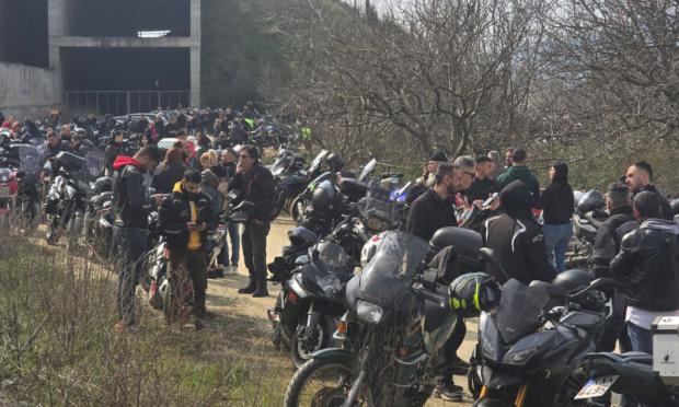 Παράλληλα, μοτοσυκλετιστές από τη Βόρεια Ελλάδα αλλά και από άλλες περιοχές της χώρας πραγματοποίησαν μοτοπορεία στη μνήμη των 57 θυμάτων, με σημείο κατάληξης το σημείο της μοιραίας σύγκρουσης των δύο τρένων.