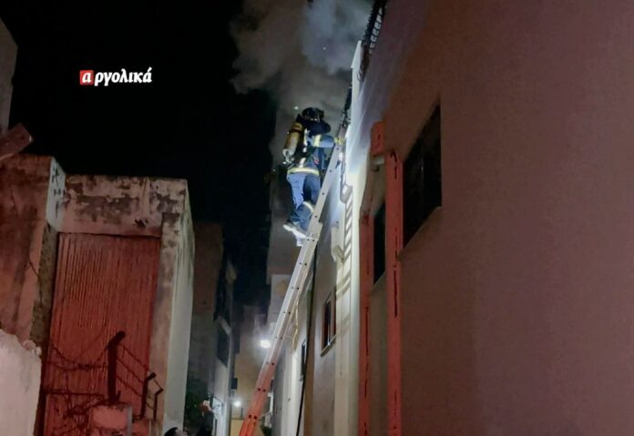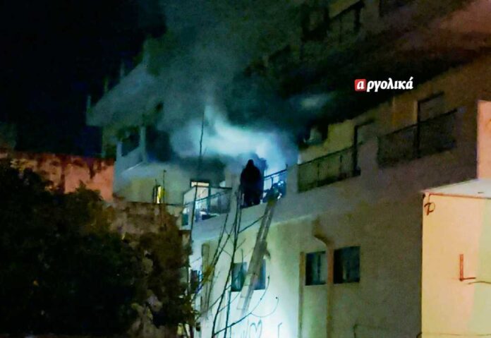 Η φωτιά, σύμφωνα με τα argolika, εκδηλώθηκε τα μεσάνυχτα της Τετάρτης σε διαμέρισμα 1ου ορόφου σε τριώροφη πολυκατοικία στην οδό Ινάχου στο Άργος.