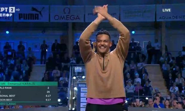 Ο Έλληνας πρωταθλητής παρουσιάστηκε στο κοινό και απέσπασε θερμά χειροκροτήματα στο μίτινγκ Mondo Classic, όπου οικοδεσπότης είναι ο Αρμάντ Ντουπλάντις.