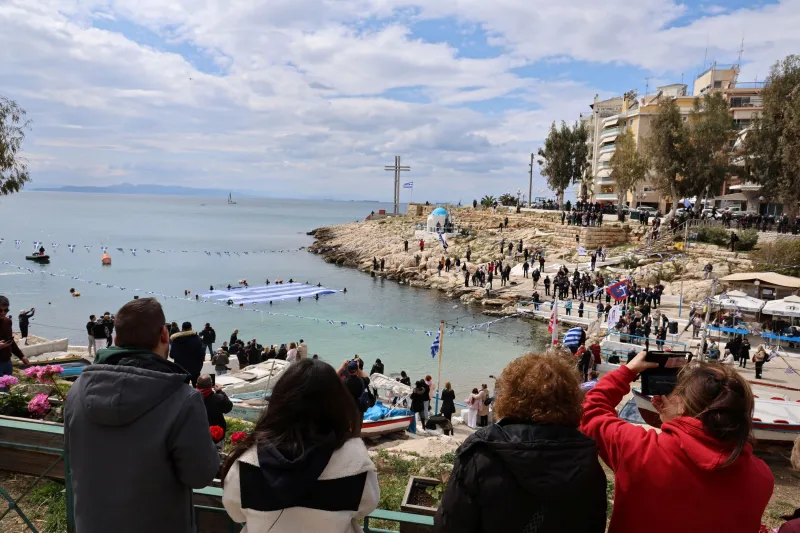 Λίγο νωρίτερα από κάθε άλλη χρονιά, η θάλασσα της Πειραϊκής «ντύθηκε» στα γαλανόλευκα. Ο Δήμος Πειραιά τίμησε την Εθνική Επέτειο της 25ης Μαρτίου 1821 με μια συμβολική κίνηση, υπενθυμίζοντας τους ηρωικούς αγώνες των Ελλήνων στις θάλασσες. Στις 12:00 ακριβώς, στον Όρμο της Αφροδίτης (το γνωστό «Μπαϊκούτσι»), μέλη του Συνδέσμου Ελλήνων Βατραχανθρώπων βούτηξαν στα νερά για να απλώσουν μια τεράστια ελληνική σημαία στην επιφάνεια της θάλασσας.