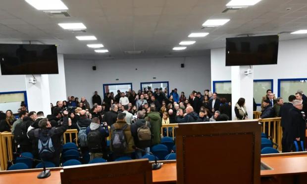 Δίκη για το σιδηροδρομικό δυστύχημα στα Τέμπη, που στοίχισε τη ζωή σε 57 ανθρώπους, κυρίως νέους ηλικίας 15 έως 25 ετών, στην Λάρισα, Δευτέρα 23 Μαρτίου 2026. Στο Τριμελές Εφετείο Κακουργημάτων παραπέμπονται 36 άτομα, ενώ οι μάρτυρες ξεπερνούν τους 350. Περισσότερα από 230 πρόσωπα - συγγενείς θυμάτων, επιζώντες και φορείς - θα παραστούν προς υποστήριξη της κατηγορίας. Οι 33 από τους κατηγορούμενους αντιμετωπίζουν βαριές κακουργηματικές κατηγορίες. Στο εδώλιο βρίσκονται στελέχη από όλο το φάσμα του σιδηροδρομικού συστήματος, συμπεριλαμβανομένων του ΟΣΕ, της ΕΡΓΟΣΕ, της ΡΑΣ, καθώς και της Hellenic Train. Στιγμιότυπο από τη δίκη για την τραγωδία στα Τέμπη, που στοίχισε τη ζωή σε 57 ανθρώπους (Πηγή φωτογραφίας: ΤΑΤΙΑΝΑ ΜΠΟΛΑΡΗ/EUROKINISSI)