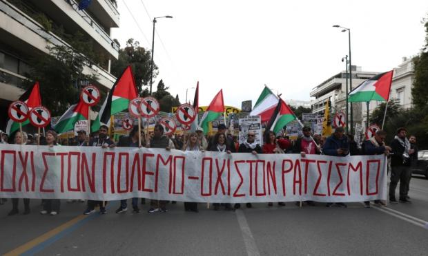 Αντιπολεμικό συλλαλητήριο στην Αθήνα, πορεία προς την πρεσβεία των ΗΠΑ με καπνογόνα και συνθήματα