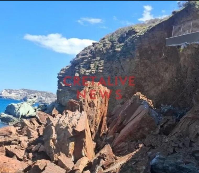 Όπως αναφέρει το cretalive.gr, ένα ολόκληρο κομμάτι από βουνό έπεσε μέσα στη θάλασσα, ενώ ταυτόχρονα αποκολλήθηκε μπαλκόνι παρακείμενου ξενοδοχείου.