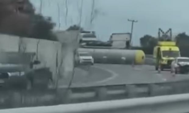 Βυτιοφόρο ανετράπη στην Εγνατία Οδό - Κλειστό το ρεύμα προς Θεσσαλονίκη