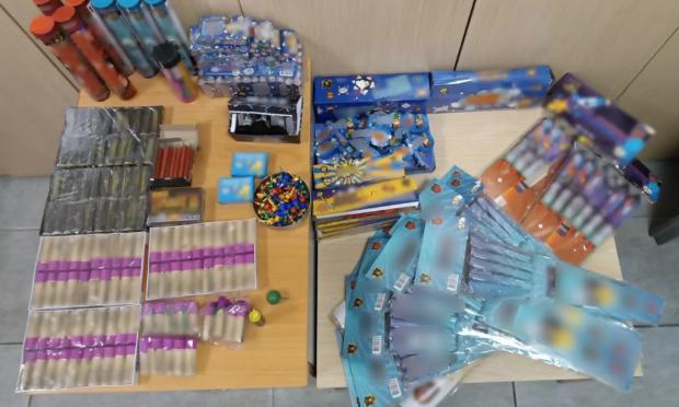 Ειδικότερα οι αστυνομικοί πραγματοποίησαν έλεγχο σε κατάστημα που διατηρούσε ο συλληφθείς όπου εντοπίστηκαν και κατασχέθηκαν 8 καπνογόνα, 146 κροτίδες, 119 βεγγαλικά και 488 παιδικά αθύρματα (σ.σ. μικρά πυροτεχνήματα χαμηλής έντασης), τα οποία διέθετε προς πώληση χωρίς την απαιτούμενη άδεια.