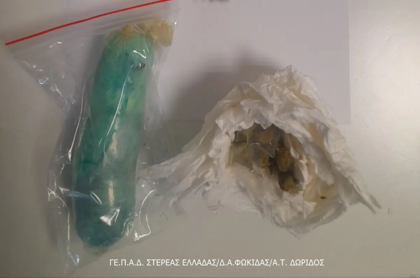 Κατά τον έλεγχο, παρέδωσε δύο αυτοσχέδιες συσκευασίες με ακατέργαστη κάνναβη, συνολικού βάρους 109,40 γραμμαρίων, τις οποίες είχε κρύψει στο σώμα της αλλά και στην επένδυση της τσάντας της.