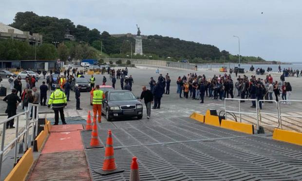 Νωρίτερα στις 12 το μεσημέρι δημιουργήθηκε ένταση κατά την άφιξη του πλοίου της γραμμής Πειραιάς-Χίος-Μυτιλήνη «Blue Star 1», καθώς κτηνοτρόφοι κατέλαβαν τη χερσαία ζώνη του λιμανιού, δεν επέτρεψαν την αποβίβαση φορτηγών αυτοκινήτων με εμπορεύματα, κάποια από τα οποία ευπαθή, ενώ επιτράπηκε η αποβίβαση μόνο επιβατών, ΙΧ αυτοκινήτων και αυτοκινήτων με υλικά για τον στρατό και φαρμακευτικά προϊόντα.