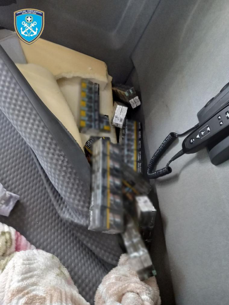 Σύμφωνα με το Λιμενικό κατά την διάρκεια της επιθεώρησης του φορτηγού από στελέχη του Σώματος με την συνδρομή σκύλου της ομάδας Κ-9, εντοπίστηκαν 540 πακέτα τσιγάρων, τα οποία ήταν επιμελώς κρυμμένα στην καμπίνα του οδηγού και συγκεκριμένα σε ντουλάπια αλλά και μέσα στο στρώμα του κρεβατιού.