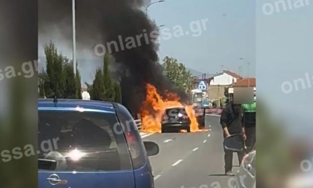 Αναστάτωση προκλήθηκε λίγο μετά τη 1 το μεσημέρι στη λεωφόρο Καραμανλή, στη Λάρισα.  Σύμφωνα με πληροφορίες και βίντεο που κατέγραψε το τοπικό μέσο onlarissa.gr, αυτοκίνητο που κινούνταν στο σημείο τυλίχθηκε ξαφνικά στις φλόγες, κοντά στην εκκλησία του Αγίου Γεωργίου, στο ρεύμα προς το Αρχηγείο Τακτικής Αεροπορίας.